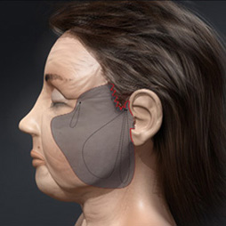Ткани подтягиваются через маленький вертикальный разрез около виска. К плюсам MACS-Lifting относятся небольшой восстановительный период и естественный внешний вид после операции. Сохраняются черты лица и природная мимика, нет и проблемы «перетянутости», свойственной классической методике подтяжки. Так же, эта операция одна из самых безопасных — из-за особенности разреза отсутствует риск задеть лицевой нерв.