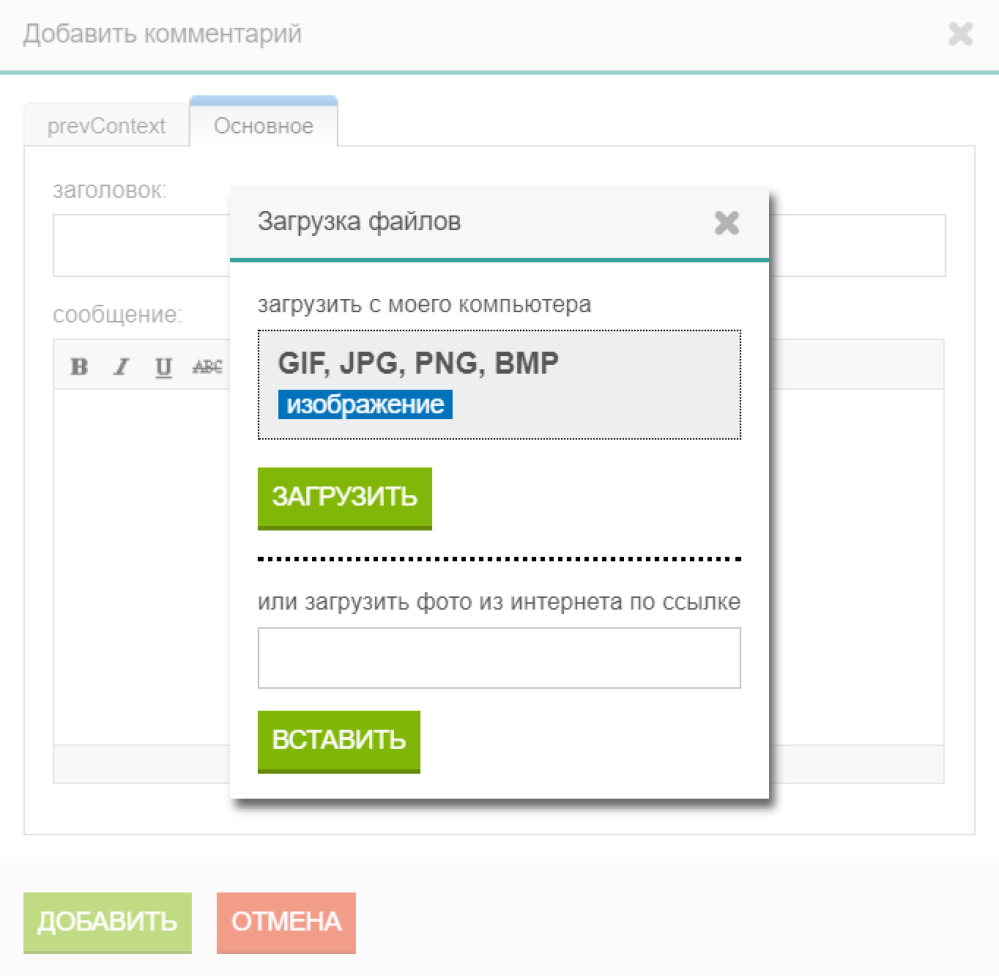 Затем вы нажимаете кнопку «Загрузить» или «Вставить» — во втором случае, копируете ссылку изображения (URL). После этого картинка вставляется и выглядит примерно вот так