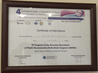 Геворг Степанян — сертифицированный пластический хирург. Член Армянской ассоциации пластических хирургов (AAPRAS). Член Европейского общества пластической реконструктивной и эстетической хирургии (ESPRAS). Член Международной конфедерации пластической, реконструктивной и эстетической хирургии (IPRAS).